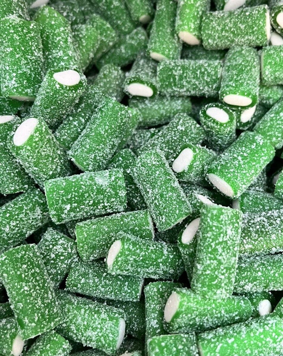 Suiker, glucose- fructosestroop, water, maïszetmeel, TARWEmeel (GLUTEN), dextrose, vochtigheidregelaar (E240), voedingszuur (E330, E296), gelatine, palmvet, zuurteregelaar (E331), emulgator (E471), aroma, kleurstof (E100, E133)